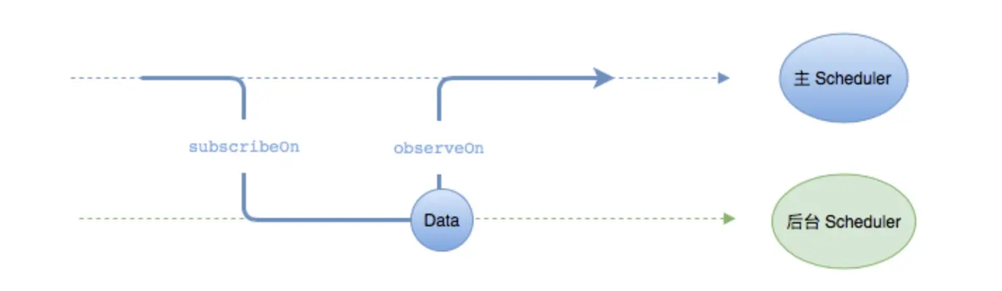 subscribeOn来决定数据序列的构建函数在哪个 Scheduler 上运行。 在上面的例子中,由于获取Data需要花费很长的时间,所以用subsribeOn切换到 后台Scheduler 来获取Data。这样就可以避免阻塞主线程。 - 我们用