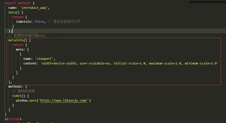 (3)在单个wap端的vue页面中设置meta信息