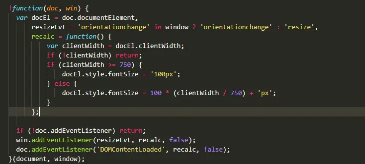 docEl.style.fontSize = 100 * (clientWidth / 750) + 'px';