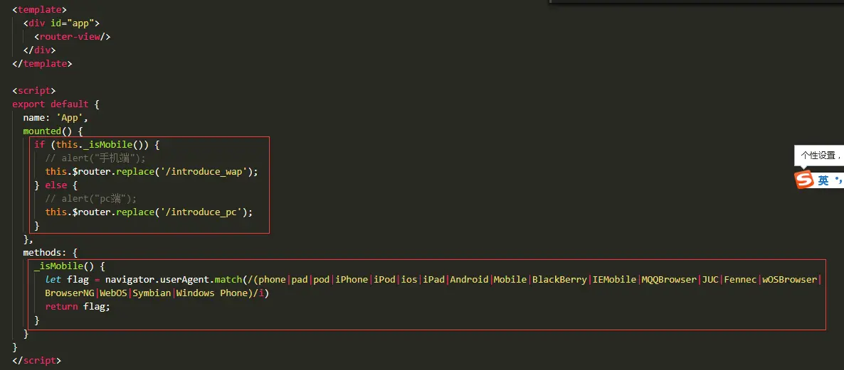 7. 判断是电脑打开还是手机打开的,电脑打开的显示introduce_pc页面,手机打开的显示introduce_wap页面