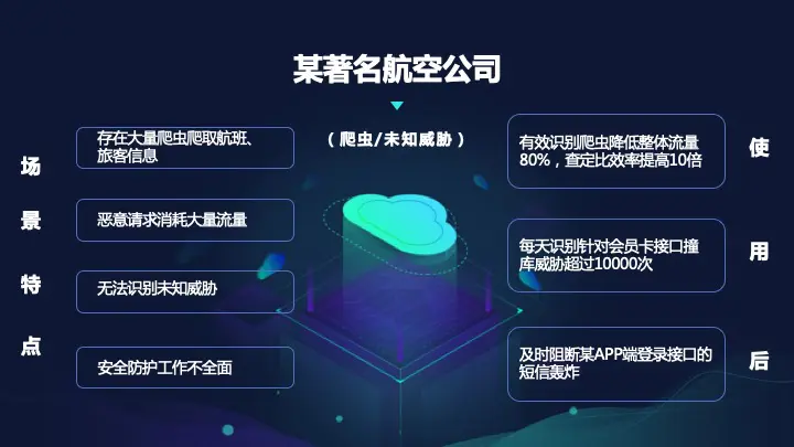 对于不少航空企业而言,面临的问题不仅仅是尚未建立完善的安全防护体系,其航旅信息被爬取的问题一直存在,同时平台还存在大量未知安全威胁,造成航空公司业务不稳定,用户数据泄露等问题。