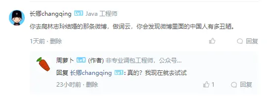 其实拿到评论数据之后,简单浏览了下,确实有很多难以启齿的评论,但是呢,这个事情我觉得还是没有必要太上纲上线了,哈哈哈,总之祝福吧