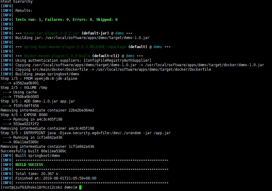 如果没有报错,我们使用docker来构建我们的应用成为一个标准的镜像,命令如下: