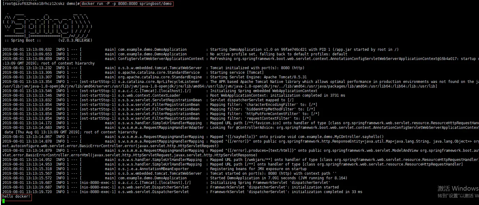 docker run -P -d -p 8080:8080 springboot/demo