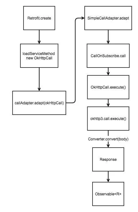 里面的call.execute()就是执行网络请求的,这些就和前面没有区别了,最后会得到Respone,然后进行解析,这就讲清楚了怎么使用RxJava发送网络请求的,那么第二个问题,最终我们怎么把返回值转换为对应的Observable呢。接着看,分析方法类似于上面,在ServiceMethod的build中有
