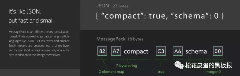 任何Java序列化工具,序列化/反序列化的时候,都是通过反射去遍历Class属性,然后挨个生成byte数组。Msgpack序列化的时候,filed不写key,只写index,类似数组,它的编码方式是type+length+body,这样传输时整体包会小很多,另外Msgpack支持启动预生成msgpack模版,而不用每次都反射(题外话:方法的反射调用会带来不少性能开销,原因主要有变长Object[] objs或Object… objs参数方法、自动装箱拆箱、方法内联失效,对反射感兴趣的朋友可以阅读原文)。不过糟糕的是Msgpack不支持泛型、Ref引用,而且集合类型会丢失