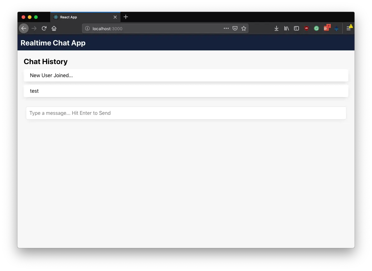 通过传递这个事件,我们将能够查询按下的键是否是 Enter 键,如果是,我们将 <input /> 字段的值发送到 WebSocket 端点,然后清除 <input />: