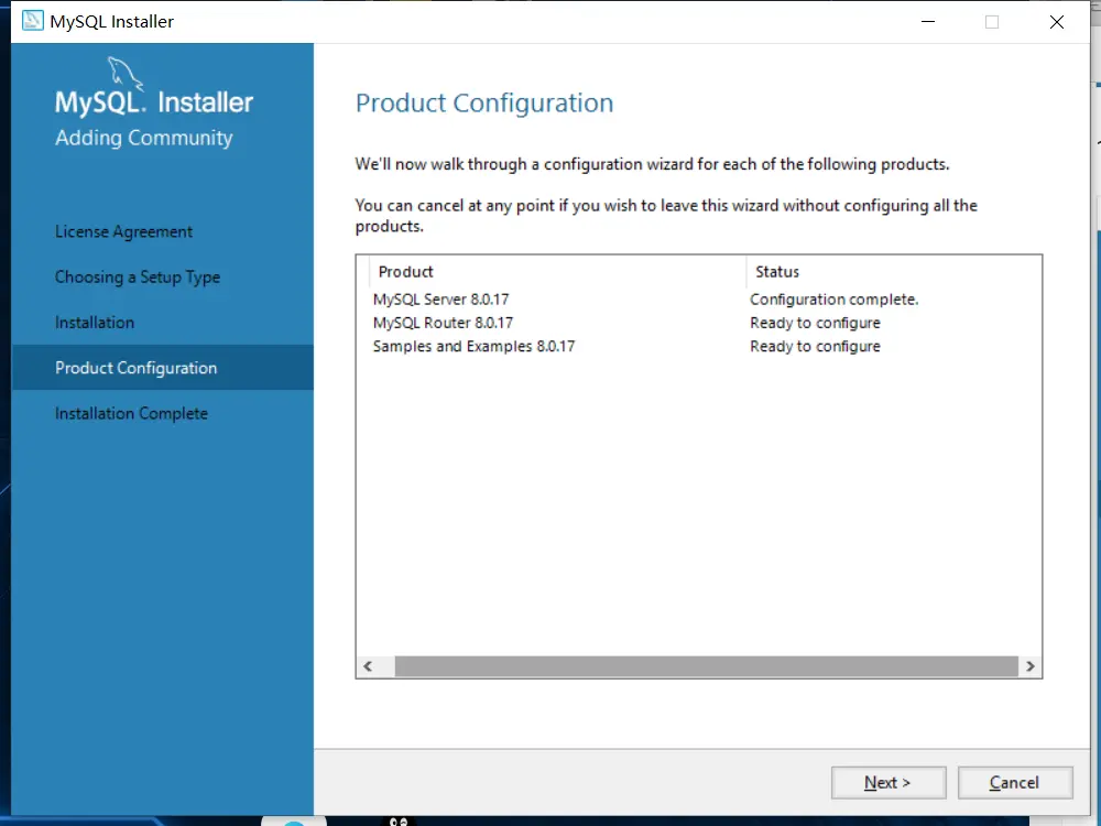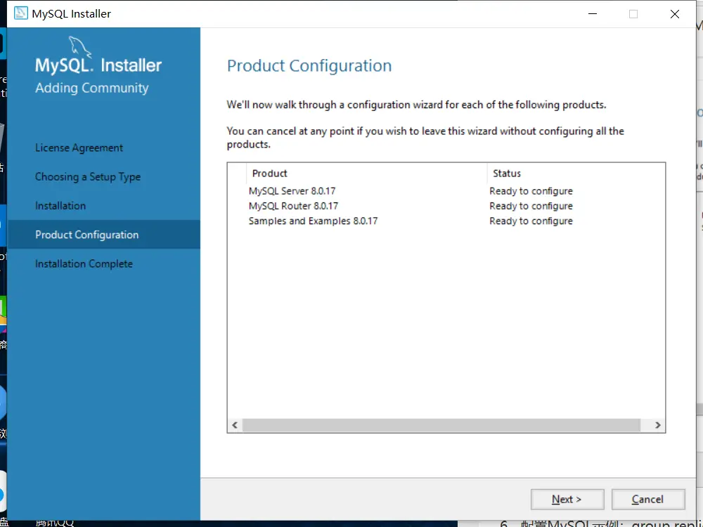 6、下一步显示配置mysql的示例,x点击下一步即可