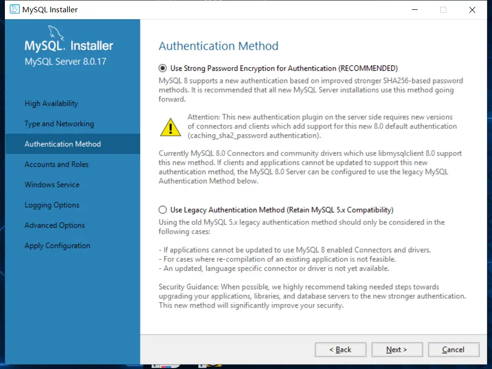 9、该界面选择身份验证方法(在这里选择了通过账号密码的方式)