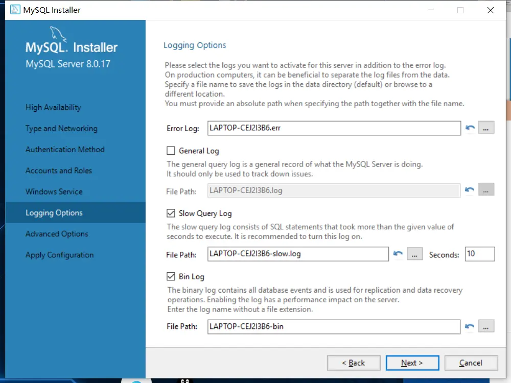12、设置日志的相关配置(在这里默认即可)