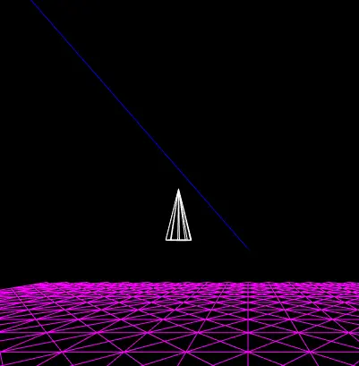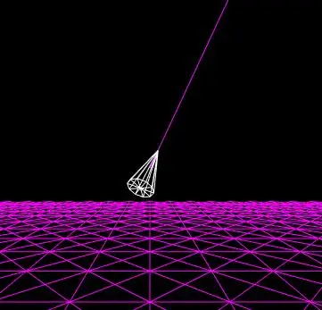 现在已经能使用四元数控制一个点进行旋转了,那么也能把四元数旋转应用到模型上,让模型朝着目标方向自旋转。看这下面这张图,cone模型往目标方向完成了旋转: