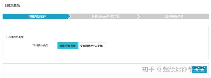 (1)选择网络类型,“公网”或者“专有网络”,然后点击“下一步”,如下图所示。