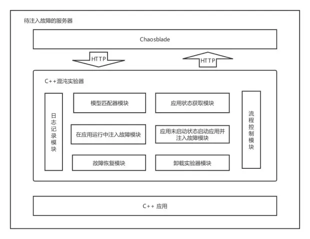 - C++ 混沌实验执行器包括 8 个模块:模型匹配器模块、应用状态获取模块、流程控制模块、在应用运行中注入故障模块、应用未启动状态启动应用并注入故障模块、故障恢复模块、卸载实验器模块 和 日志记录模块;
