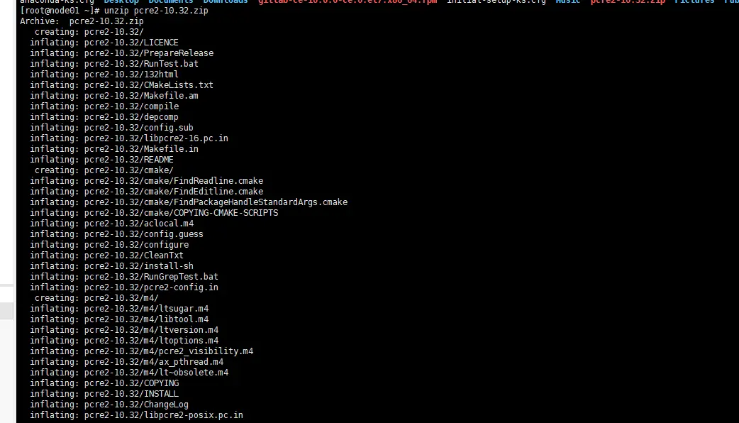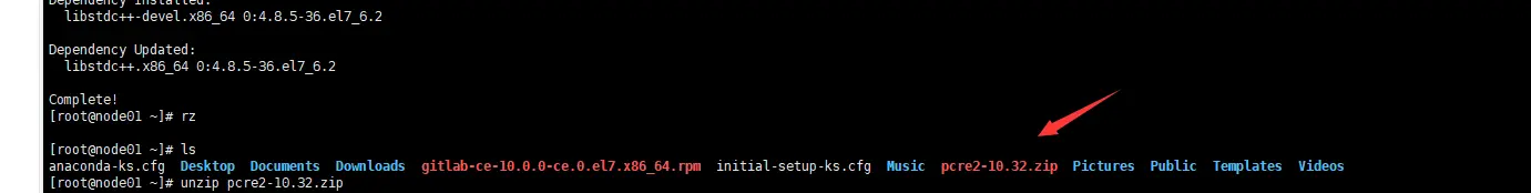 表示上传成功! unzip pcre2-10.32.zip表示解压
