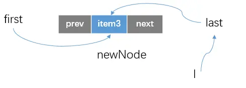 final Node<E> newNode = new Node<>(l, e, null);// Node(Node<E> prev, E element, Node<E> next){}