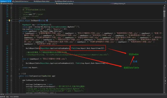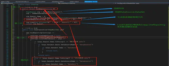 这种模式会先执行GetReport回调方法,通常GetReport里都是动态创建报表模板元素的代码,当GetReport执行完后(创建好报表模板),返回Report,继续给settings.LocateDataSource使用