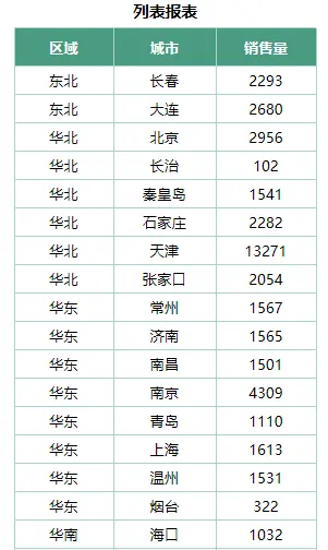 列表报表,作为常见的报表类型,以列表的方式展示字段值,无需分组合并。列表报表的样式如下所示: