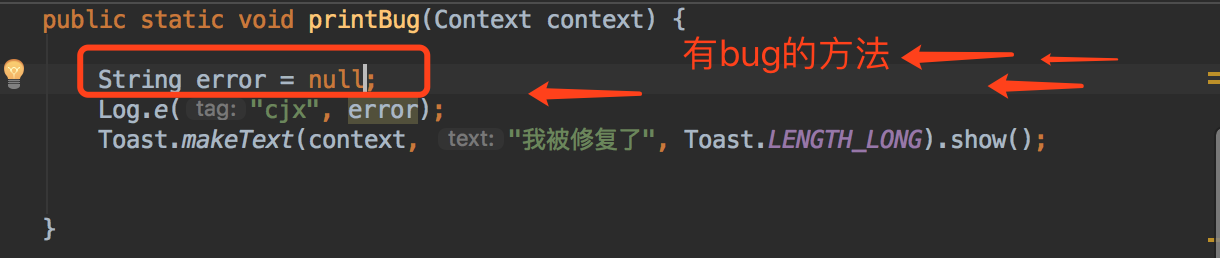第二次打开后,先点击第二个修复按钮,再点击第一个bug按钮,吐司弹出,log正常打印