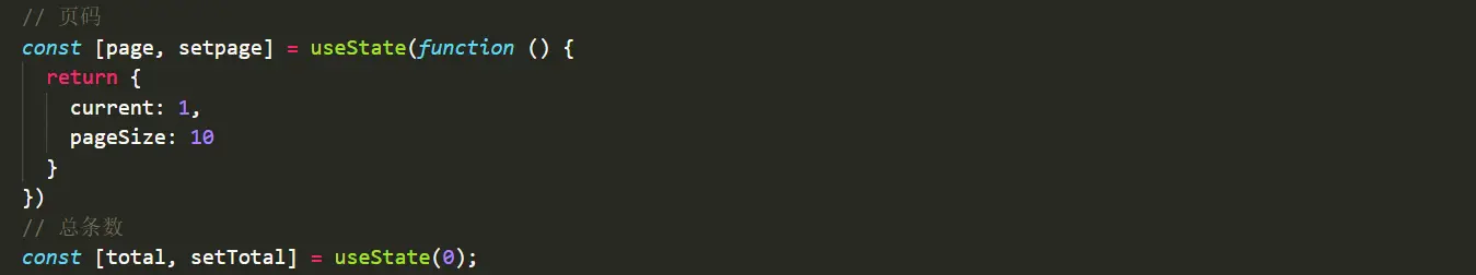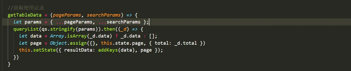 类组件声明state(一般来说还会有一个params参数 表示表格查询的参数这里截图省略了)