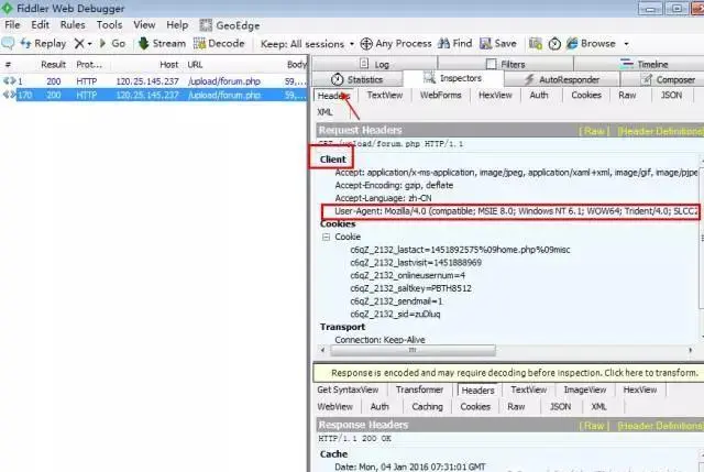 四、如何用fiddler查看User-Agent信息?