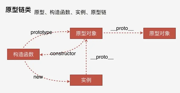 原型链就是根据实例的__proto__属性一层一层的往上链接,因为__proto__也是一个对象,所以他也会有他的__proto__, 当Object.prototype原型链就终止了