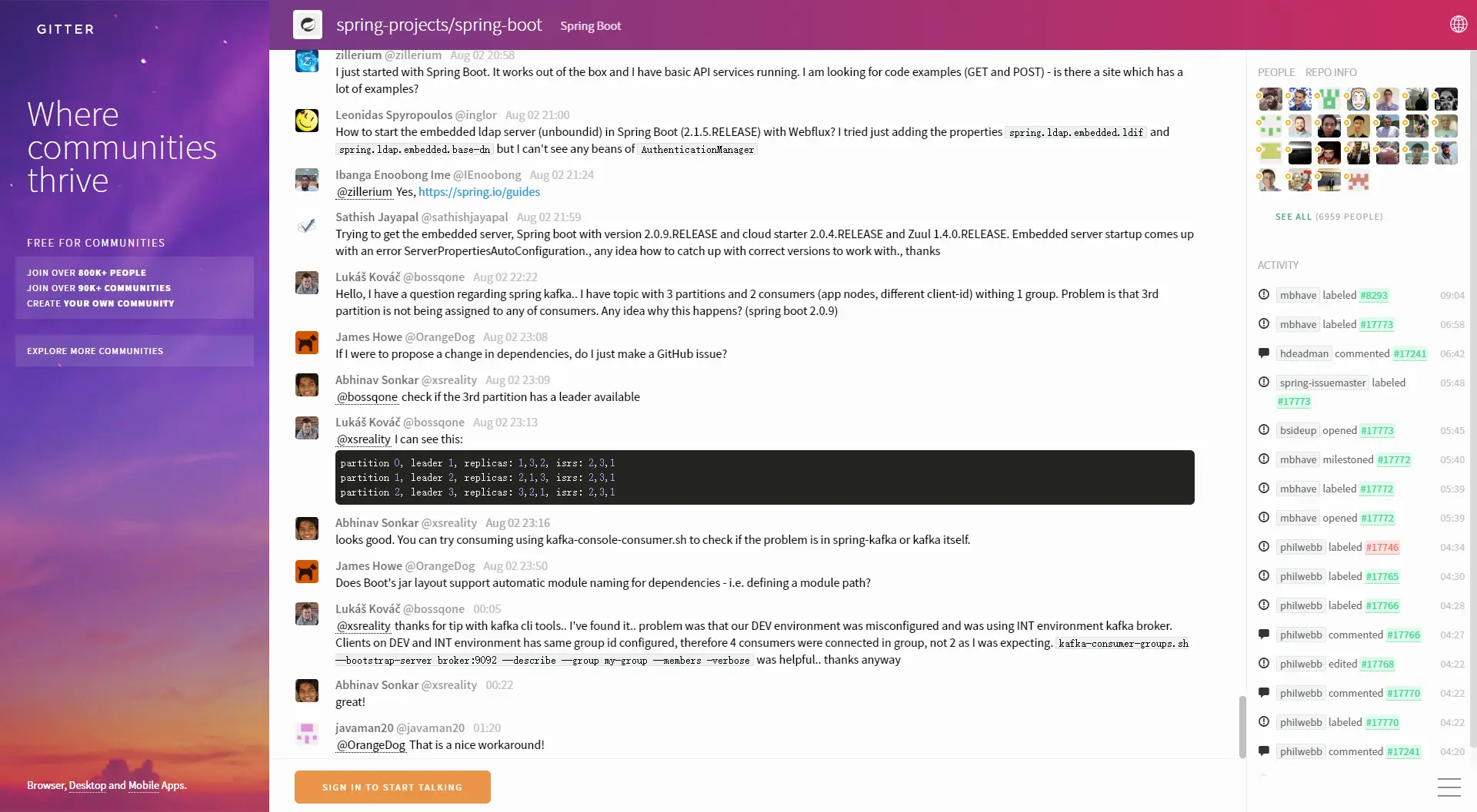还提到一个SpringBoot的社区,这个社区简单浏览了下,好像还是挺活跃的,可以看到最新的8月2号的评论,全英文的网站,也许还有Spring贡献者的大牛也说不定,可以留意一下。
