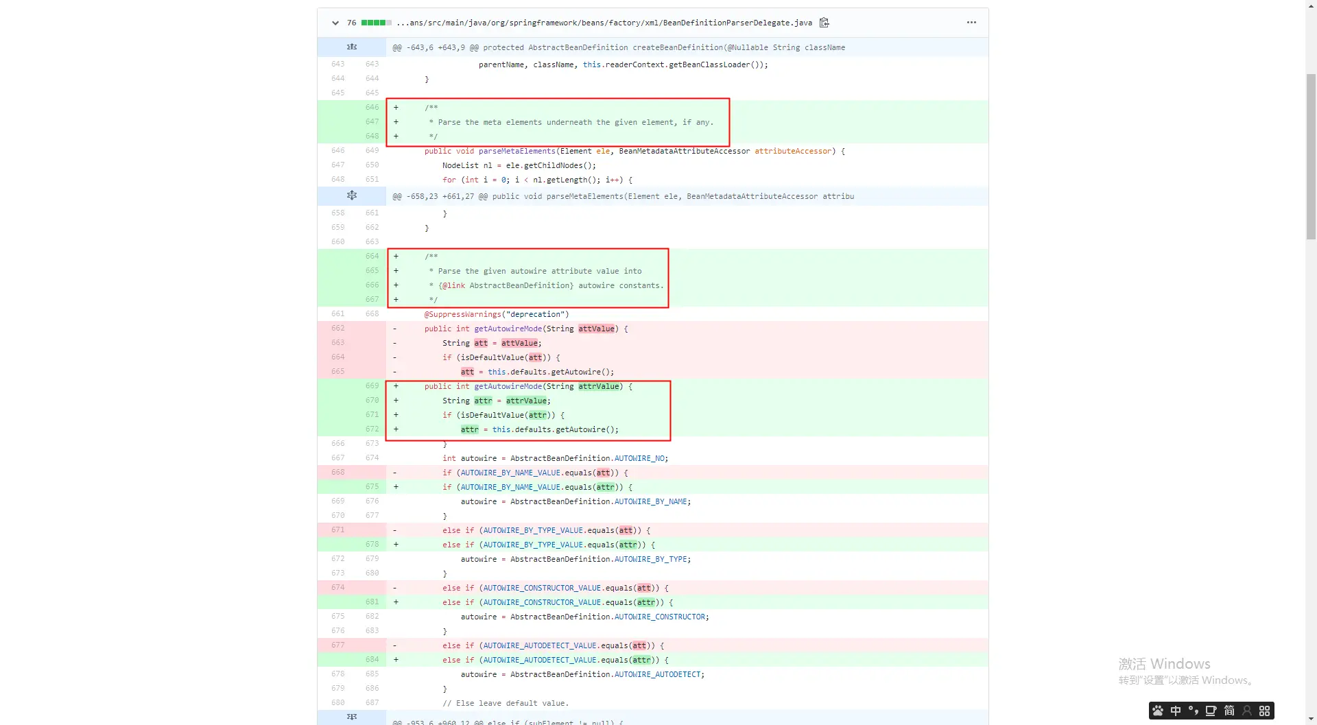 还可以点进去看到这个commit762ea3e。可以看到这为大哥不仅仅在代码中按照issue中提到的把代码的注释加上去了之后,还稍稍修改了一些变量的名字,优化了代码。然人亲身感觉到Spring的版本的迭代和代码的更新。