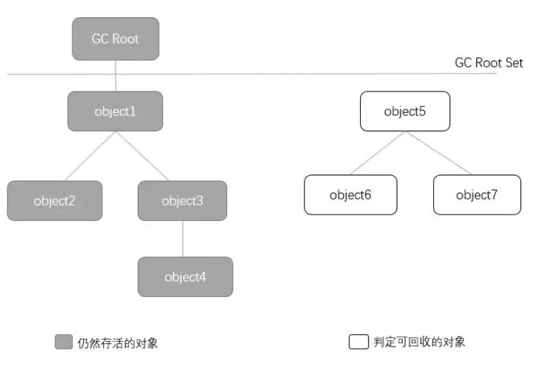 通过一系列的称为“GC Roots”的对象作为起始点,从这些节点开始向下搜索,搜索所走过的路径被称为引用链,当一个对象到“GC Roots”没有任何引用链相连的时候,就证明此对象是不可用的。