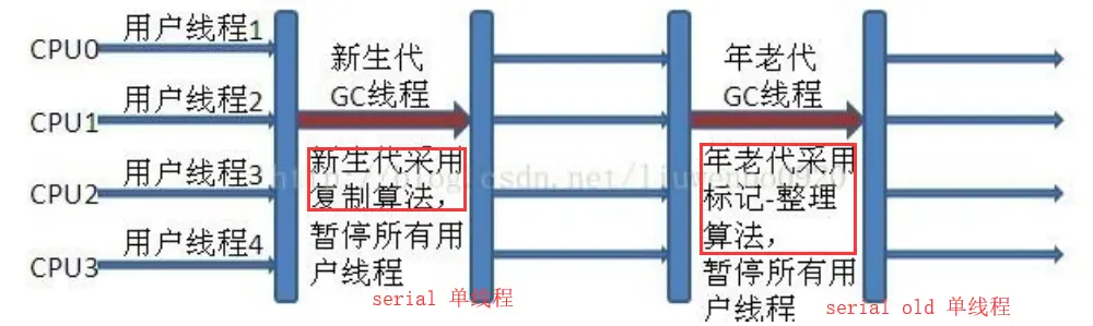 - 新生代Serial与老年代Serial Old搭配: