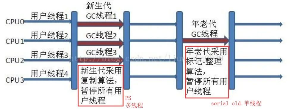 - 新生代PS与老年代serial old搭配: