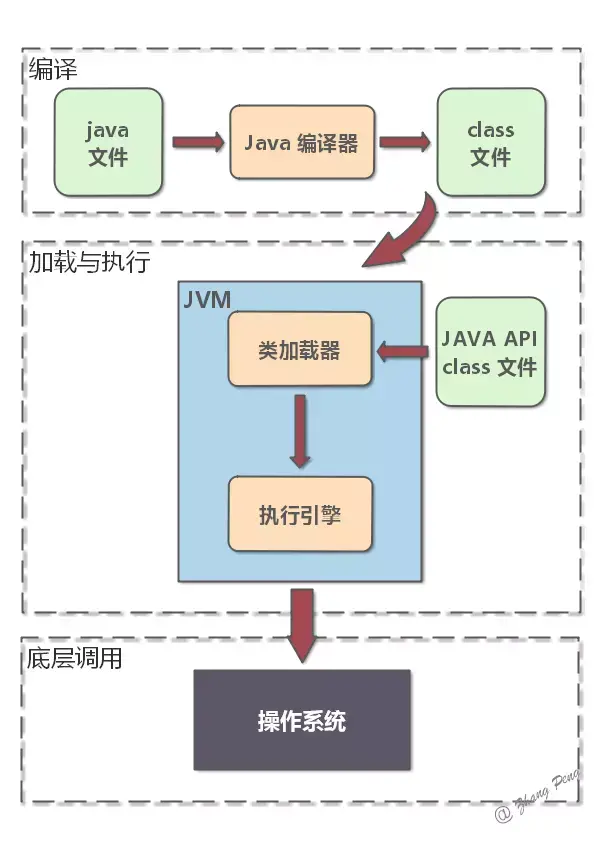 (1)在编译时,Java 编译器编译好 .java 文件之后,在磁盘中产生 .class 文件。.class 文件是二进制文件,内容是只有 JVM 能够识别的机器码。