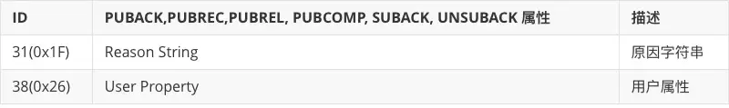 PUBACK, PUBREC, PUBREL, PUBCOMP, SUBACK, UNSUBACK 都具备以下三个属性:
