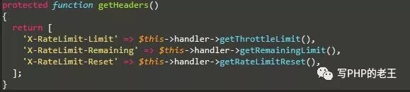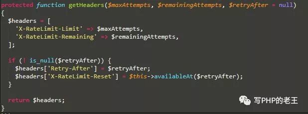 Illuminate\Routing\Middleware\ThrottleRequests获取设置的返回头信息代码如下: