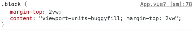 postcss-viewport-units 在编译时给视口单位增加 content 属性,例如: