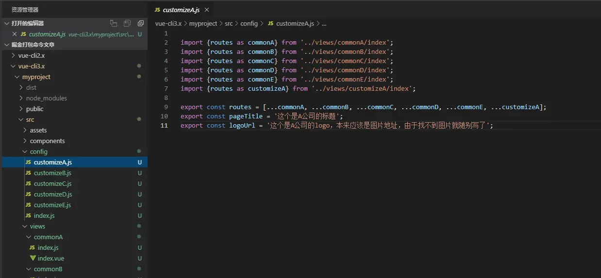 5,至此,我们完成了使用一套代码维护‘多个系统’,如果要切换为B公司的版本,我们只需要更换config/index.js中的引入文件为B公司的配置。