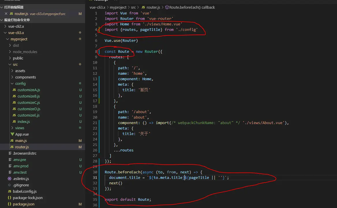 4,同时由于每个定制版的页面标题都不一样,所以我们需要给路由加点东西,修改一下。