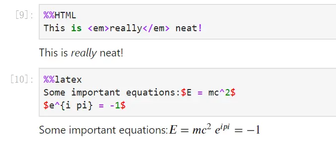 下面是一些使用的例子,包括执行 HTML 语言,以及用于显示数学公式的 LaTeX 语言。