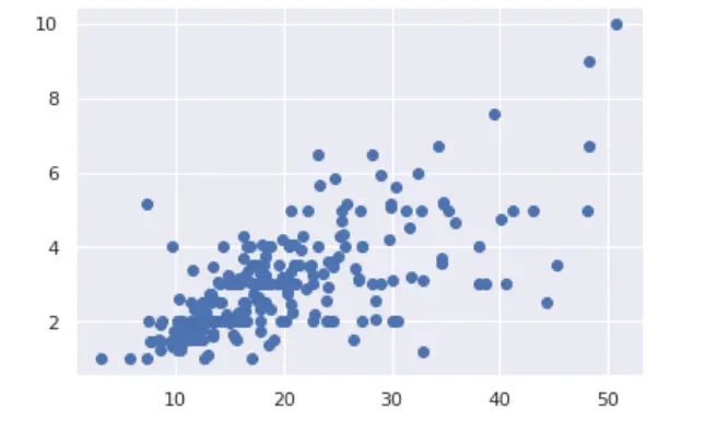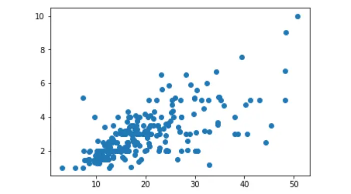 采用 Matplotlib 绘制 total_bill 和 tip 的关系图: