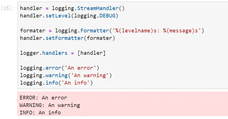 formater = logging.Formatter('%(levelname)s: %(message)s')