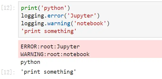 之所以会出现上图的原因是 Jupyter notebook 会监听标准的输出流,stdout 和 stderr ,但 print 和单元输出默认是输出 stdout ,而 logging 则是通过 stderr 输出。
