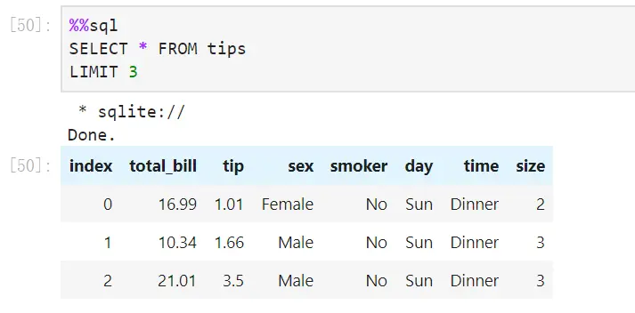 接下来就是快速采用之前用 Seaborn 加载的 tips 的数据集来构建我们的数据库: