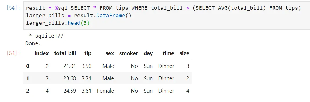 接下来就可以对数据进行一些查询的操作,如下所示,这里需要用到多行魔法命令形式 %% :