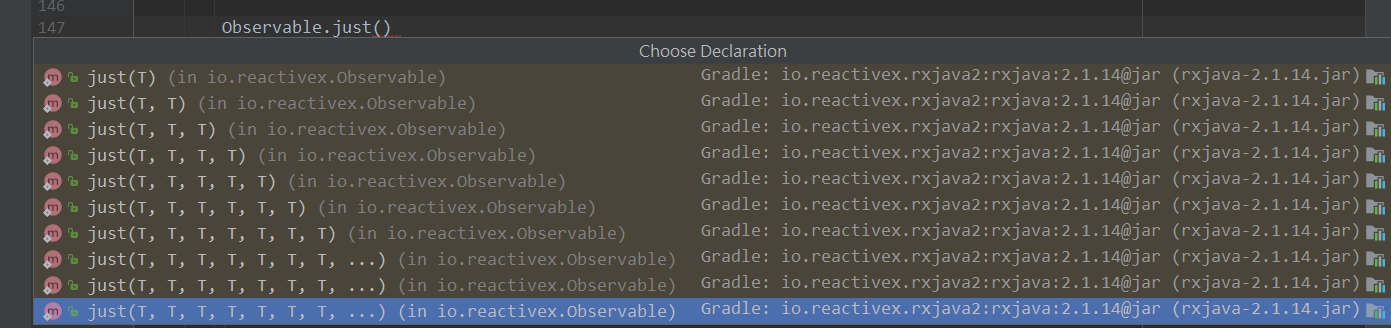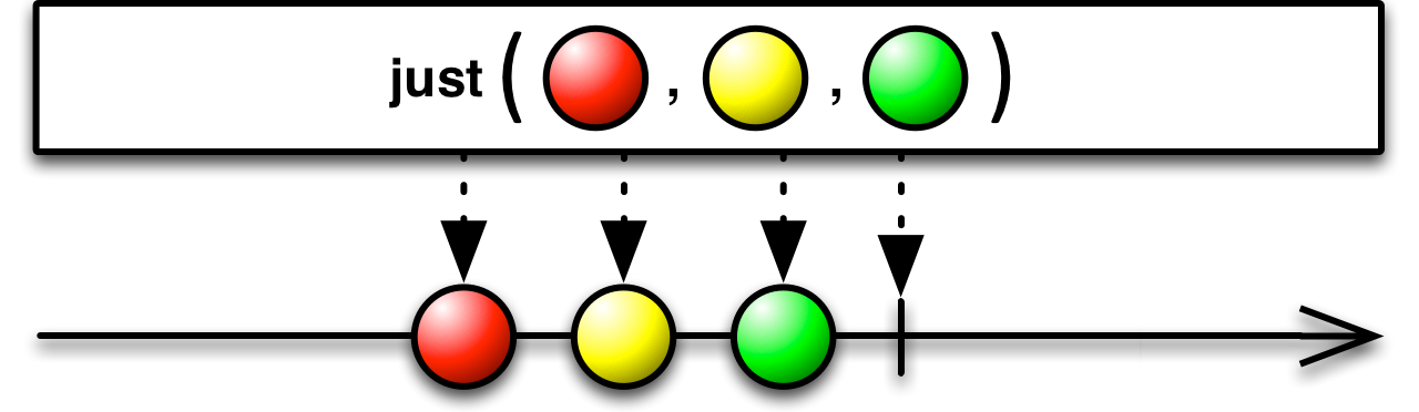 当Just()方法有多个参数时,其内部和单个参数是有一定区别的。从以下源码就可以看出,当Just有多个参数时,它实际上是利用了fromArray操作符。