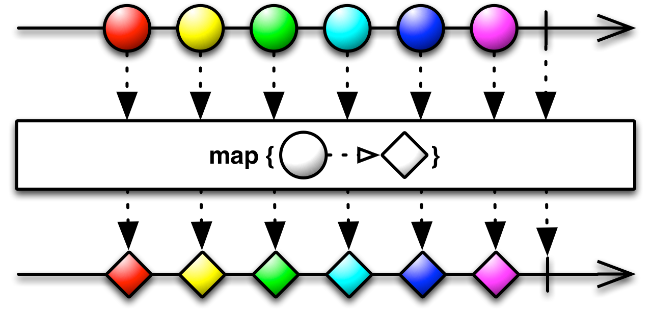 Observable.just(1,2,3,4).map(new Function<Integer, String>() {