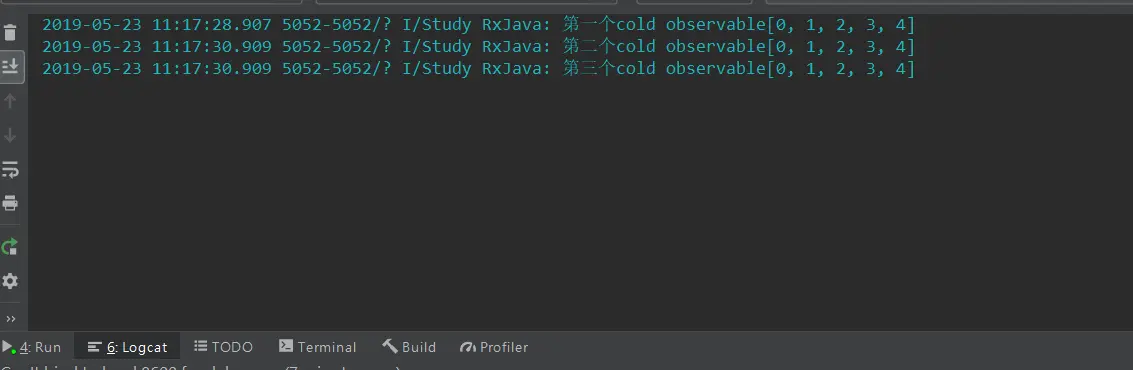 listObservable.subscribe(s->log("第三个cold observable"+s));