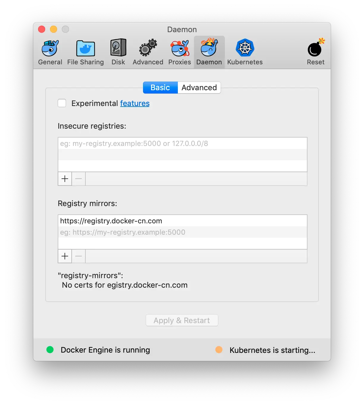 - Docker for Mac 开启 Kubernetes 下载一般要很久