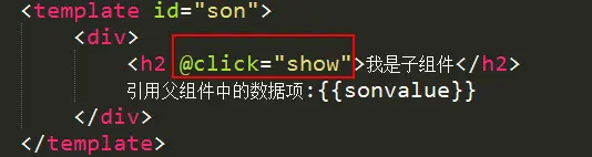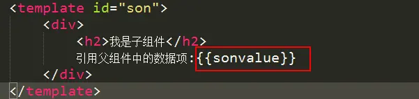 <h2>我是子组件,引用父组件中的数据:{{sonvalue}}</h2>