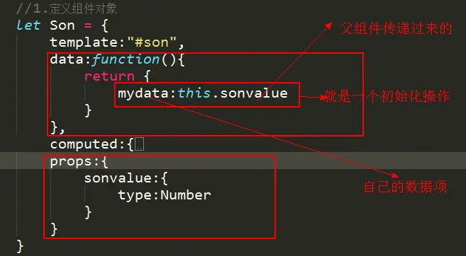 总之,数据的父传子,就是一,父中有数据;二,在父组件中通过数据绑定把数 据绑到子组件中;三,在子组件中定义props属性,来接收父中数据;四 ,在子组件中就可以使用了。