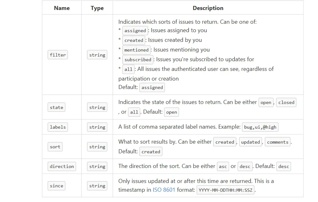 - issues 数据请求参数
