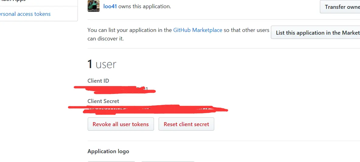 上面的 OAuth application 创建完就可以获取 client_id 和 client_secret